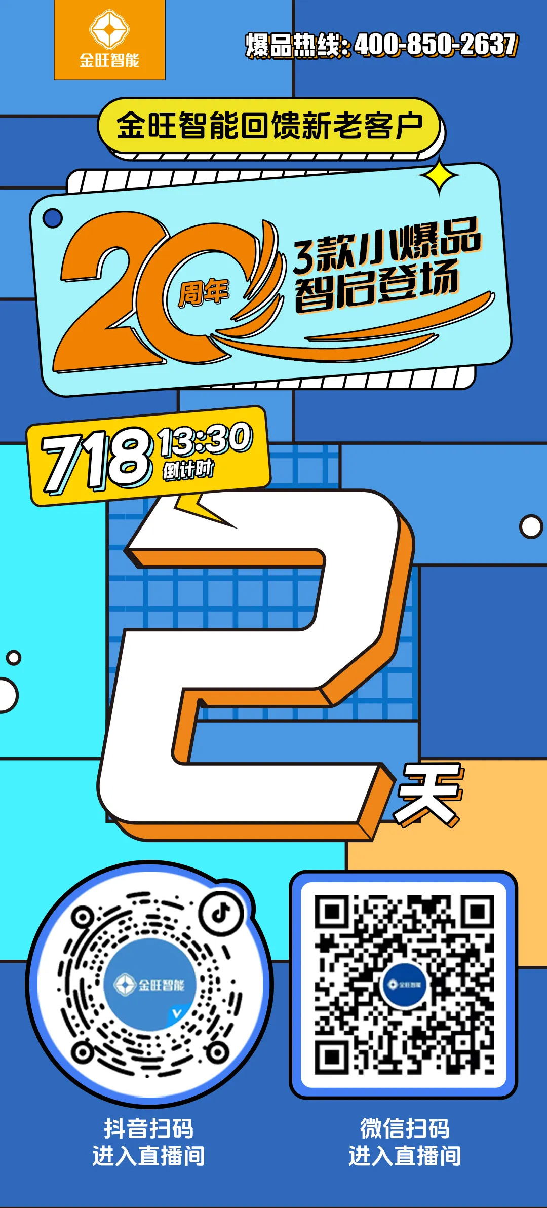 時光荏苒,感恩同行!2025年,金旺智能迎來了意義非凡的20周年生日!二十年風雨兼程,二十載創新不止。我們每一步的成長,都離不開廣大客戶朋友們的鼎力支持與深厚信任。值此璀璨時刻,金旺智能懷揣滿腔感恩,誠邀您共赴一場“智”敬未來的直播盛宴!