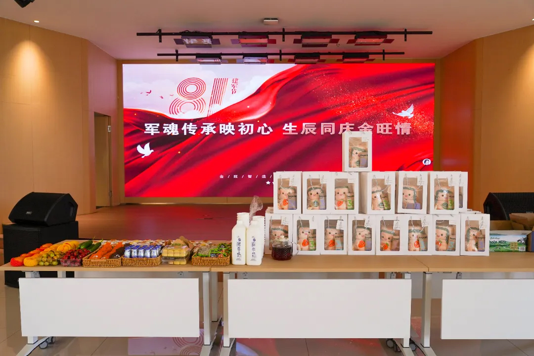 8月1日午后,金旺智能的活動室里飄著蛋糕香,也燃著別樣的熱忱——每月一次的員工生日會,恰逢中國人民解放軍建軍98周年,八月壽星與同事們圍坐在一起,在生日歌的旋律里,也在對“堅守”與“奉獻”的共鳴中,度過了一場雙向奔赴的溫暖聚會。