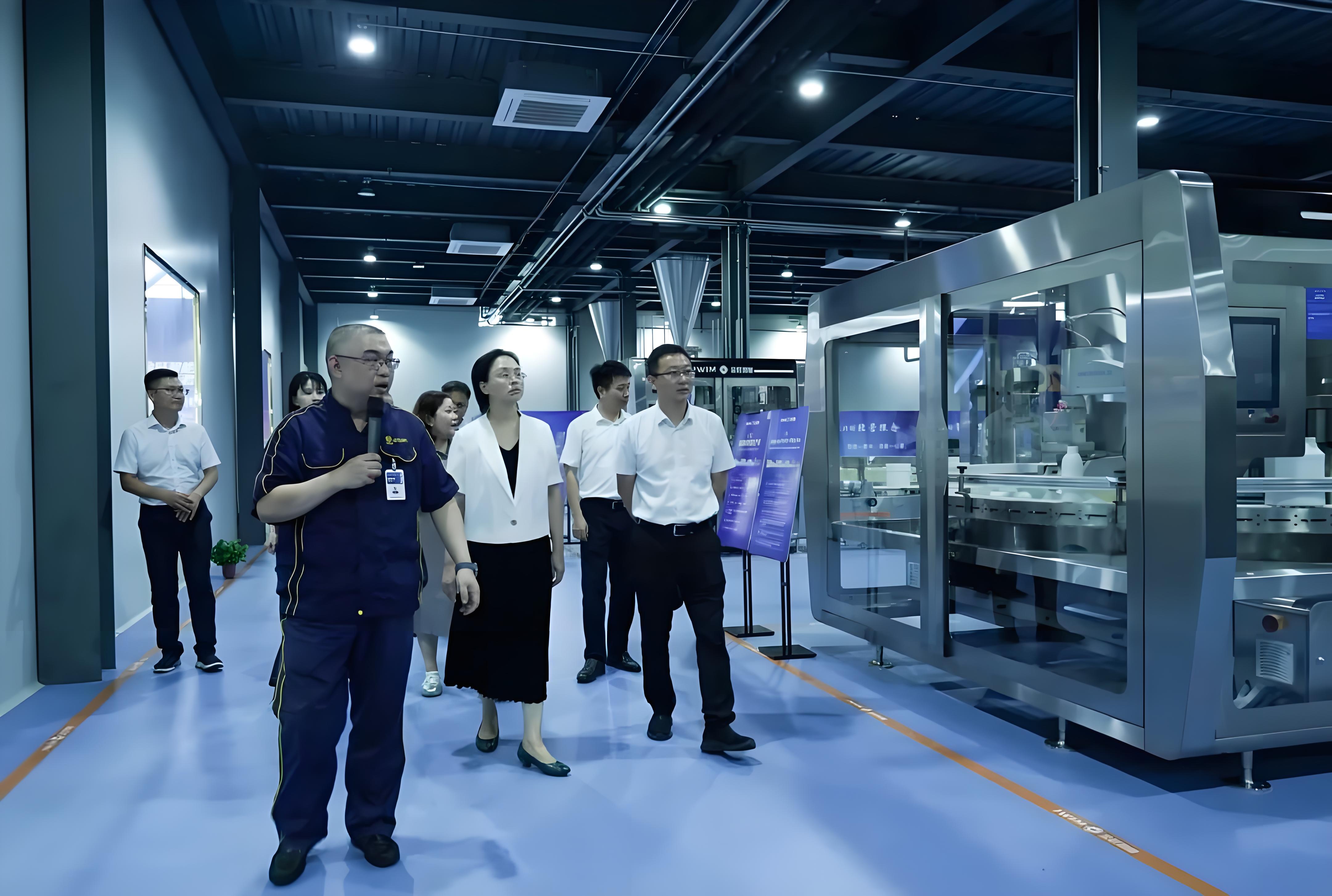 考察團一行在金旺智能副總裁司馬鈴等人的熱情接待下,先后參觀了公司的智能化產品展廳、研發中心及數字化制造車間,詳細了解了金旺智能在農化制劑智能裝備領域的最新創新成果、核心技術優勢以及未來的戰略發展規劃。公司領先的AI灌裝、AI封口測漏、AI碼垛等智能裝備及其在現代化生產線中的實際應用場景,給來賓們留下了深刻印象。