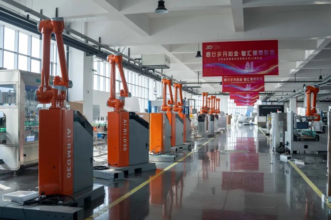其中,應用于農化制劑柔性生產的AI系列設備近期訂單增長顯著,正穩步交付。該系列設備可適配多規格灌裝、快速換產及高精度質檢,深受市場歡迎。AI鋁箔封口檢測機與AI碼垛機器人需求尤為集中:前者能精準檢測封口質量,杜絕漏液風險;后者具備靈活部署與語音操控功能,有效應對用工波動與空間限制。兩者均有力保障了產線末端順暢運行,目前正按訂單加緊生產。