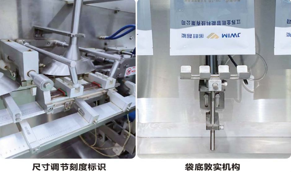 落料敦實機構:灌裝有效保證空氣排出,使物料有效充填袋底部,確保物料的裝袋率