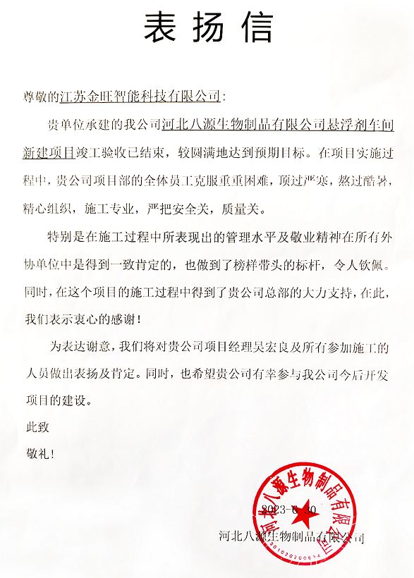 金旺暖心 | 感動客戶之聲 ——“管理水平及敬業精神深獲肯定!”