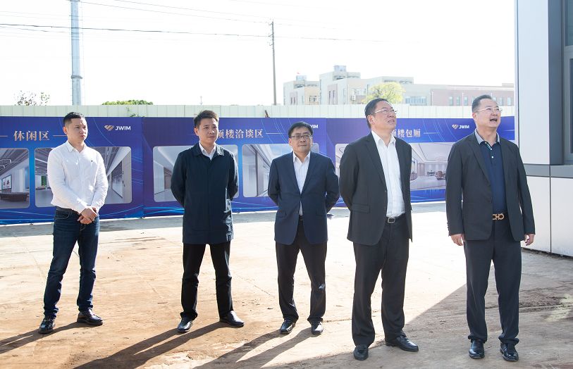 10月17日下午,金壇區委書記陸秋明、金城鎮黨委書記李祁 、金城鎮鎮長陳學謙等一行領導在金旺智能董事長房國榮的陪同下參觀了金旺智能新廠區。