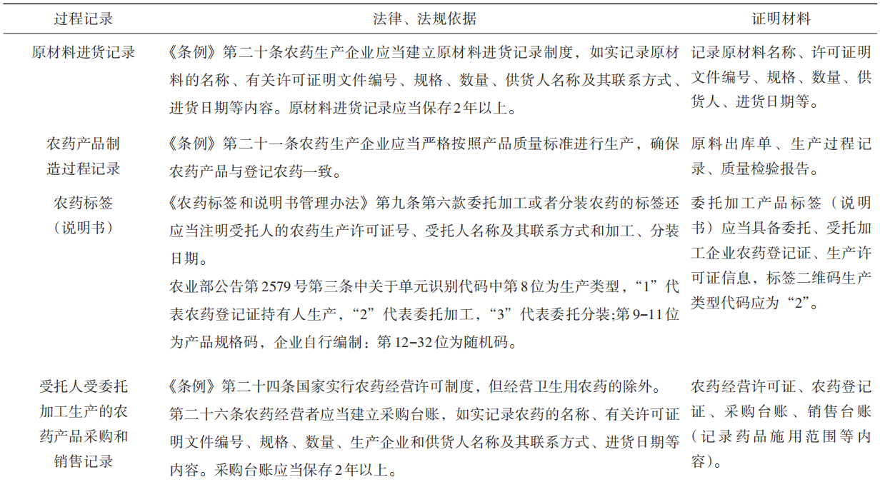 表1  農藥委托加工過程法定記錄