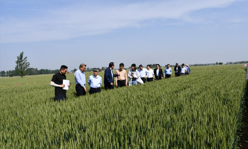 項目試驗田位于駐馬店驛城區,在200多畝小麥種植面積上,不僅進行了“歡瑪”的示范,而且開展了6個處理的對照試驗。4月27日,貴州大學宋寶安院士、湖南省農業科學院柏連陽院士、寧波大學陳劍平院士、西北農林科技大學康振生院士、全國農技中心張帥副處長、中國農科院植保所李香菊研究員等近100位領導、專家、學者等前往試驗現場,實地觀摩了“歡瑪”震撼的田間效果。