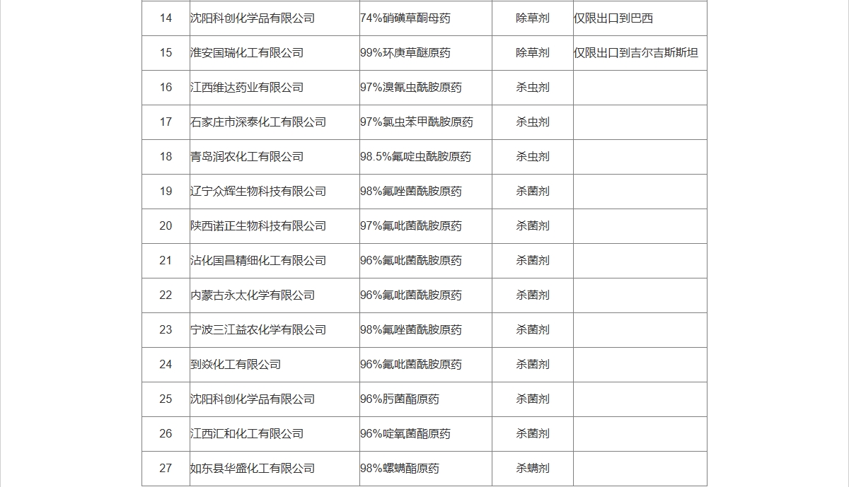 信息來源:農(nóng)業(yè)農(nóng)村部農(nóng)藥檢定所;整理:農(nóng)藥資訊網(wǎng)