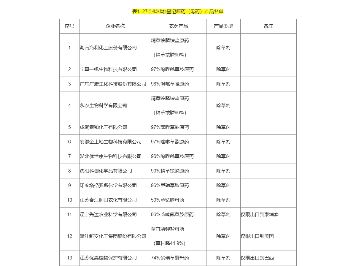 1.擬批準登記農(nóng)藥產(chǎn)品名單
