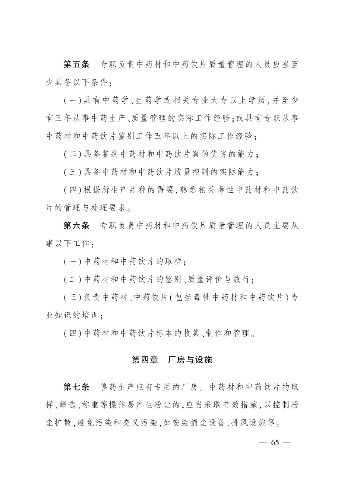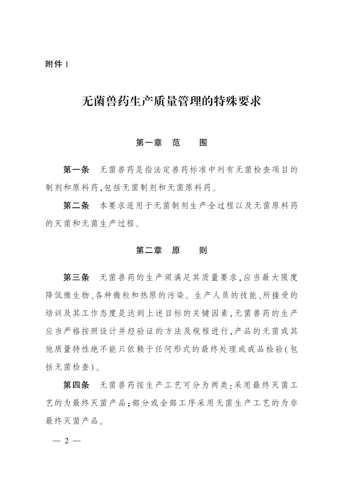 無菌獸藥生產質量管理的特殊要求;2.非無菌獸藥生產質量管理的特殊要求;3.獸用生物制品生產質量管理的特殊要求;4.原料藥生產質量管理的特殊要求;5.中藥制劑生產質量管理的特殊要求