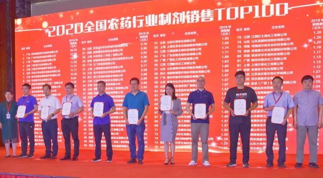 中國農藥工業協會會長孫叔寶、常務副會長兼秘書長李鐘華為獲獎企業代表頒獎。