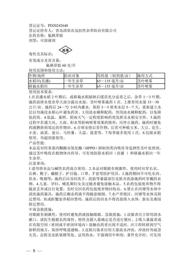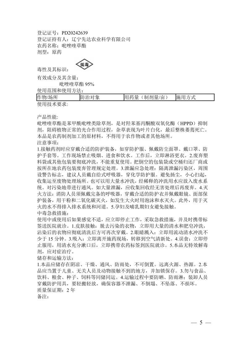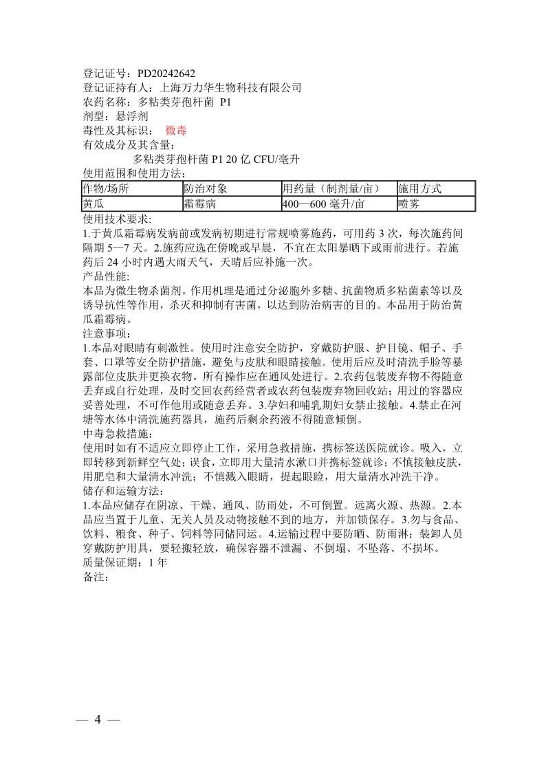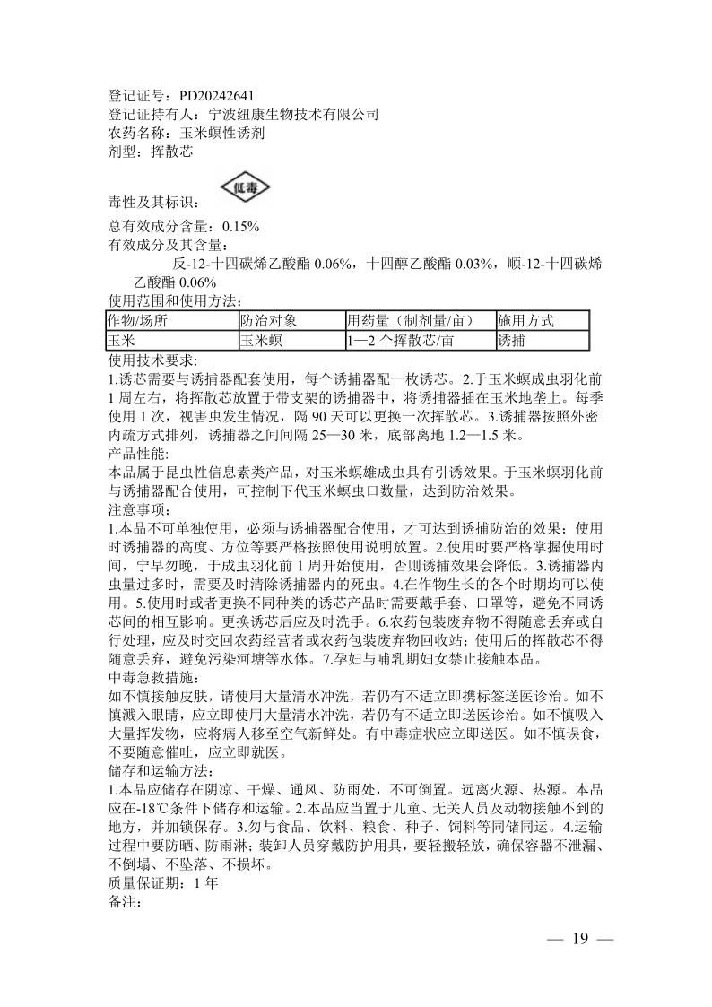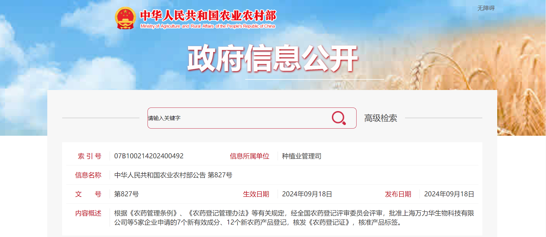根據《農藥管理條例》《農藥登記管理辦法》等有關規定,經全國農藥登記評審委員會評審,批準上海萬力華生物科技有限公司等5家企業申請的7個新有效成分、12個新農藥產品登記,核發《農藥登記證》,核準產品標簽。